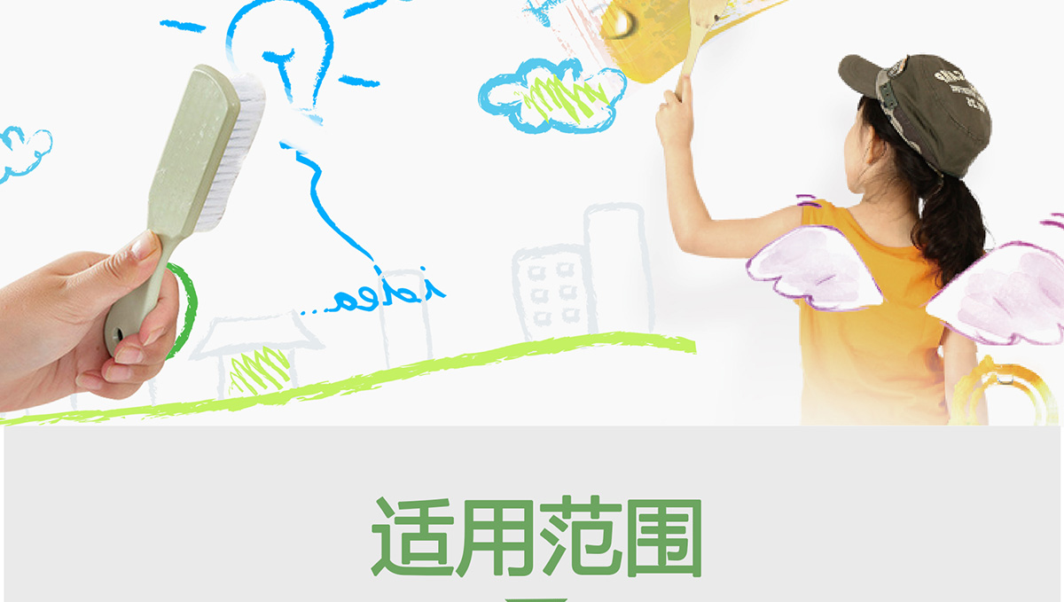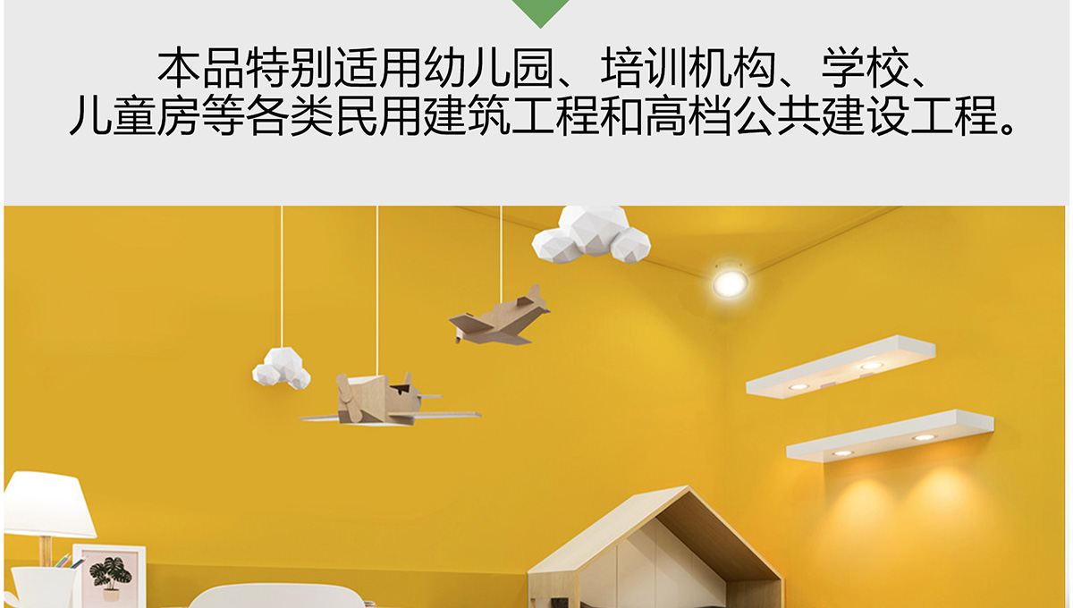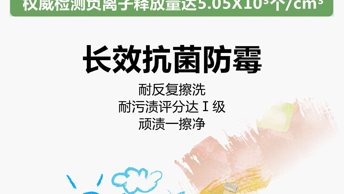 本产品是专为解决儿童墙面关注的多重问题而研发的一款高标准涂膜,独特的产品搭配,巧手益智,以DIY的手法激活孩子的无穷想象力。本品选用进口优质原料,环保易调色;全新净味技术,持续释放负离子,降解甲醛,防霉抑菌;独特荷叶疏水效果,耐擦洗;耐污渍评分达Ⅰ级,顽渍一擦净;给孩子森林级纯净空气享受的同时,让他们畅享创作乐趣,全方位开启孩子智慧未来。